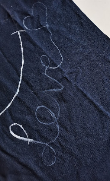 En esta ocasión es un dibujo sencillo y lo hago a mano alzada, cuando es mas complicado lo hago en papel vegetal y luego lo paso a la tela con calco amarillo