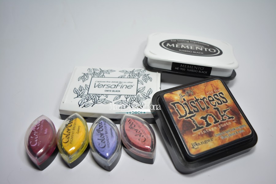 Y luego ya si queréis sellar en colores, pues alguna que otra pero a tamaño pequeño. Pueden ser Color box, Versafine, Memento etc, hay muchas.