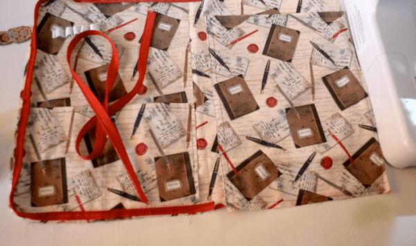 Lo primero que tengo que hacer es montar todos los bolsillos y poner la goma elástica para los bolígrafos.