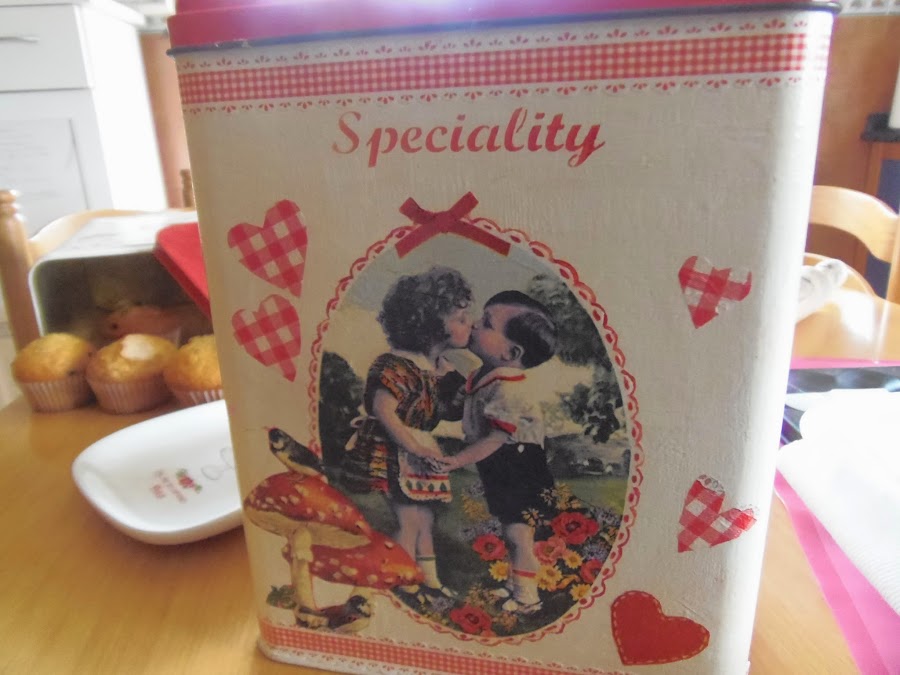 Y ya puestos os enseño unas latitas qué he decorado también con decoupage,pero este sin ir al horno jeje!!