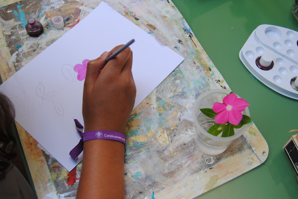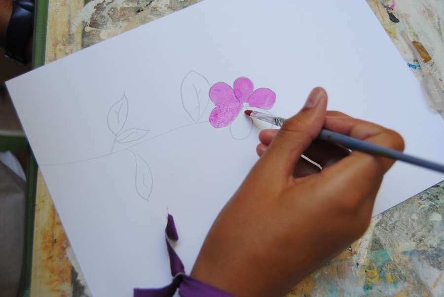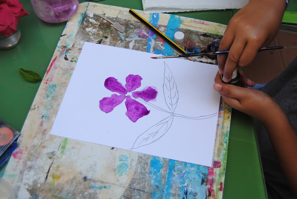 Objetivo: La pintura con acuarela siempre es un acierto. Aprenden a mezclar colores, y a hacerlo en el mismo cuadro. Es una actividad que consiste en plasmar el color y la vida de la flor.