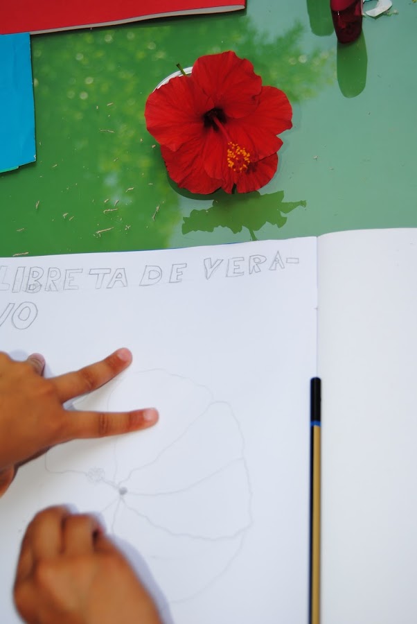 Elegimos una flor, y nos preparamos para hacer un boceto de la misma. No importa si está bien o mal hecho. Sólo si el niño nos lo pide, podemos echarle una mano. El boceto se hace con lápiz y goma.