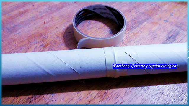 Yo utilicé unos semi-duros donde viene el papel aluminio. Lo primero que hacemos es pegar 2 tubos entre sí para obtener una sola pieza larga, pegamos primero con silicón, luego con cinta de papel o cinta de carrocero...