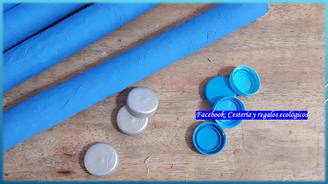 Pintamos del color al gusto, y rematamos los extremos de los tubos pegando unas tapitas plásticas (de refrescos, leche, cloro, etc)...