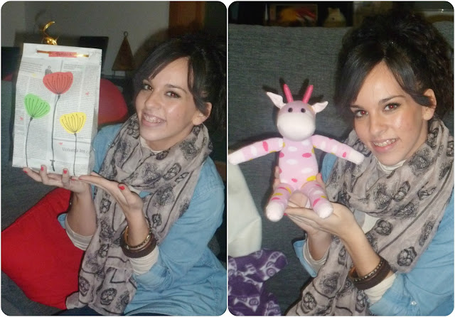 A Tamara le encanto!! aquí la prueba de ello ;) y no sólo la jirafa, sino también el paquete en el que venía envuelta, que bien me lo trabajé!