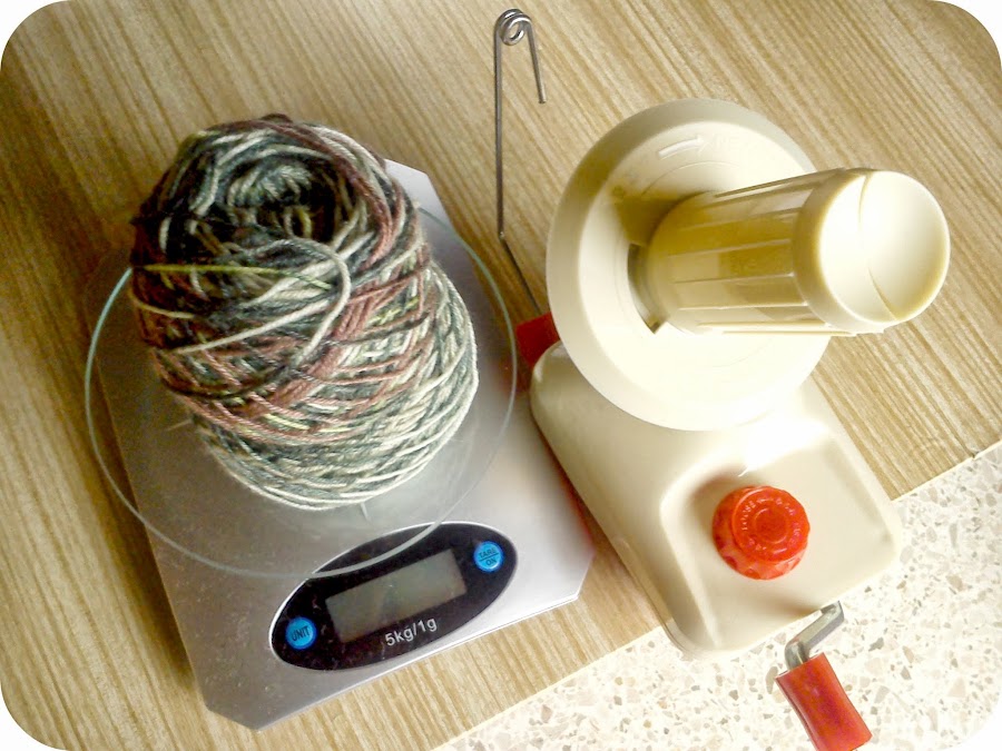 ¿Cómo hacer? Pesamos lo que nos queda de madeja. Hacemos un par de vueltas y volvemos a pesar.La diferencia será lo que has invertido en esas dos vueltas, ¿verdad?