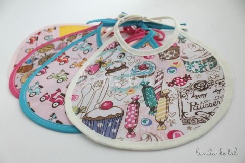 Otro producto que se hace imprescindible entre los más pequeños desde el principio son los baberos. Y los baberos, además de prácticos, queda claro al ver estos que hace Patricia, que pueden ser también bonitos: