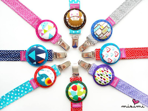 O sus chupeteros, realizados con las telas tan coloridas que emplea: