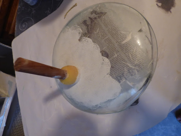 Y una vez seco todo,lo pinté primero de color tostado(que es el que se vé poniendo el plato del derecho) y luego de color blanco para que se transparentara un poco y aclarara visualmente el tono tostado. Con pincel de esponja se pinta fenomenal el cristal,porque no deja marca de pincelada
