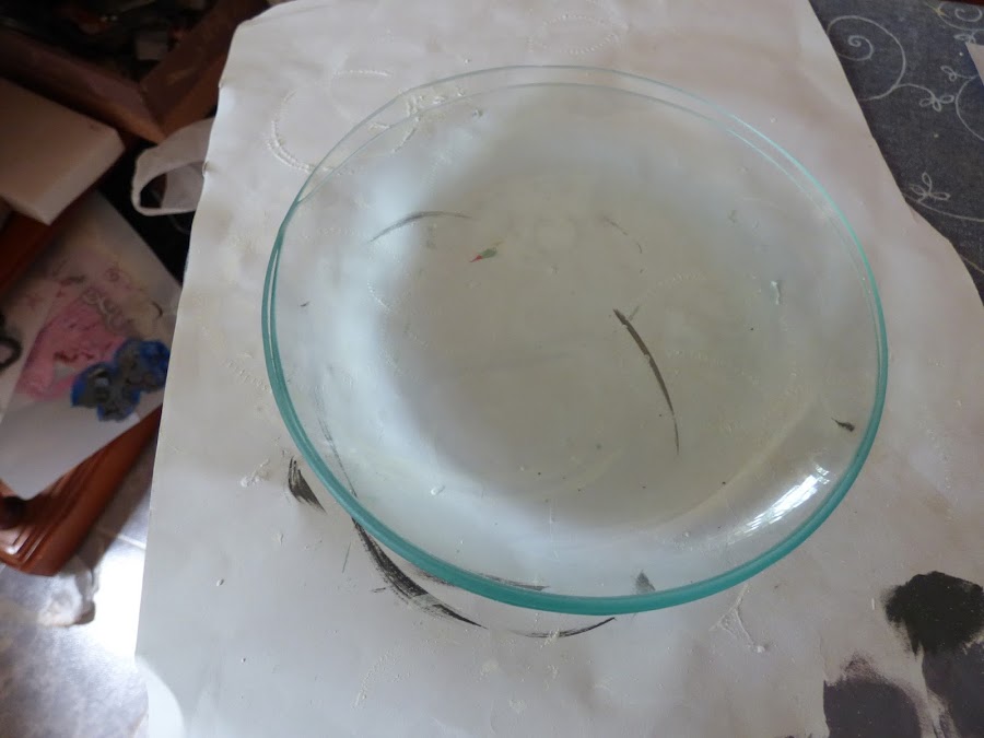 Al ser curvo el plato, la cinta tendía a despegarse pero bueno, hice el relieve lo más rápidamente que pude para que no se fastidiara...