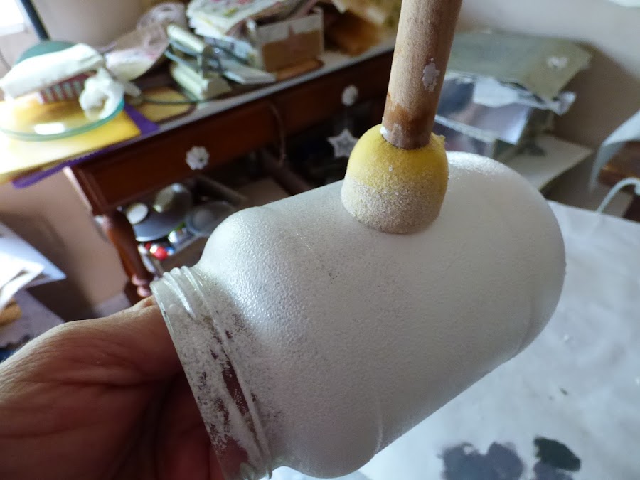pintados tambien con pincel de esponja y una imprimación blanca que tenía que acabar, antes de que se estropeara
