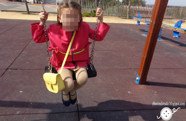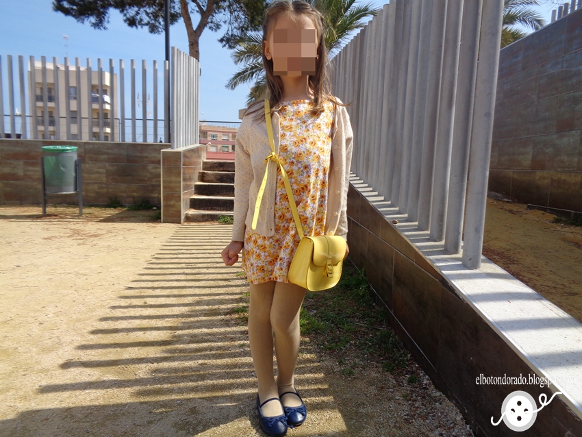 Cuando ya estábamos listos para salir dice ¡espera!, y de tooooda la colección de bolsos que tiene ha elegido el amarillo porque iba a juego con el vestido, ¡qué presumida es! jejeje.
