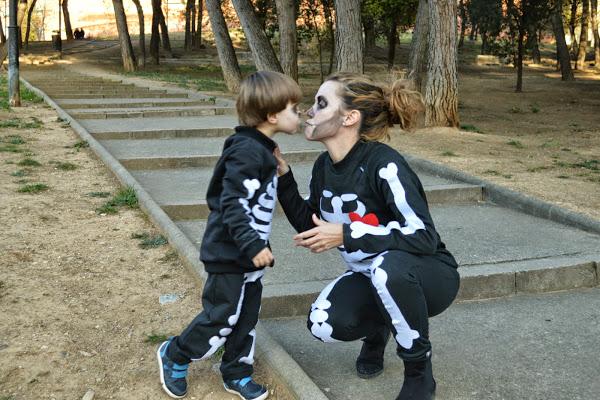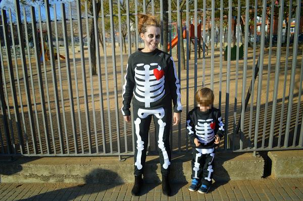 Estos carnavales quería ir igual que mi hijo disfrazado como el año pasado (fuimos de demonios), e intenté que fuéramos de algo cuqui como cupidos, nubes, yo que sé, le di mil propuestas.... y nada le hizo cambiar de opinión, el quería ir de esqueleto, si o si, para tener tres años es un cabezota.