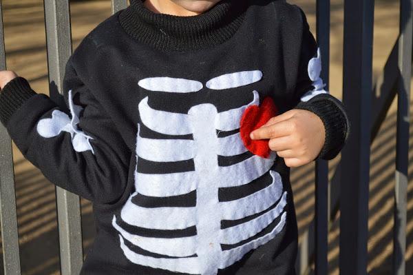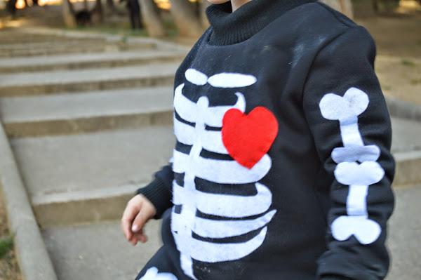 Fuimos de esqueletos, pero con corazón. Disfraz muy uVe jijijiji