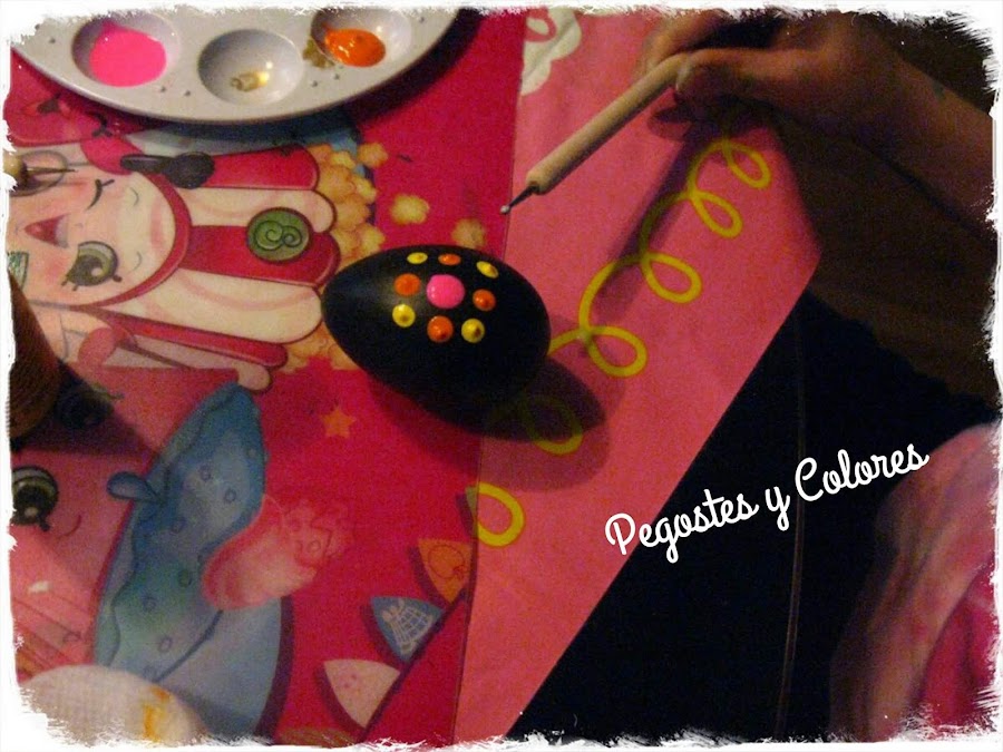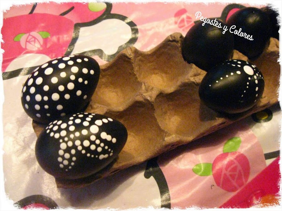 De inmediato pensé en lo divertido que seria para mi hija el decorar con gises o tizas algunos, pero también en guardar la mitad para hacer yo unos a mi manera... y rescatar de nuevo las buenas lecciones que nos dio la gran artesana Lola del blog El Refugio de Lirtea sobre Puntillismo .