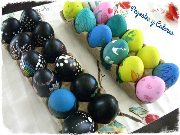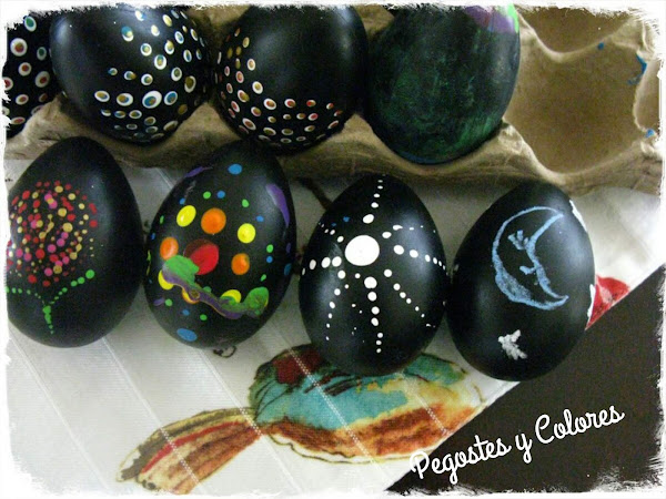 Les gustaron? A mi me encantaron estos huevos, sobre todo los de pizarra aunque si me dieron dolor de cabeza porque es muy dificil con esa superficie curveada, pero creo que el siguiente año lo intentare de nuevo. Los que se pintaron con gis tienen la ventaja de que se pueden limpiar y utilizar de nuevo, lo cual es un plus... aunque nos sobraron muy pocos asi, jeje.