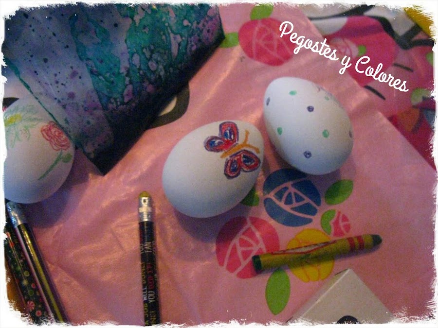 2.- Luego para algunos de los huevos, decidimos hacer dibujos con crayones.