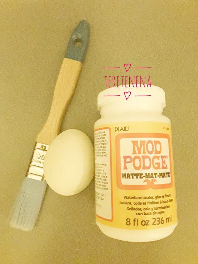 Una vez seca la pintura, aplicamos la primera capa de cola para decoupage, también se puede utilizar la clara de los huevos, pero en este caso queda bien sólo si decoramos con servilletas.