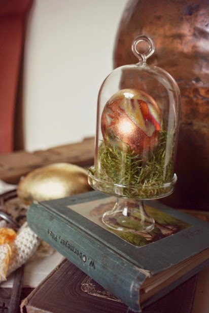 Cada año coloreabamos los huevos mi hijo y yo, ahora ya hace años que el no participa por que "ya esta grande" asi que lo que hago es decorar algunos siempre con una idea diferente, este año tomé varias, por ejm. queria huevitos dorados... como en el cuento de la gallina de los huevos de oro!