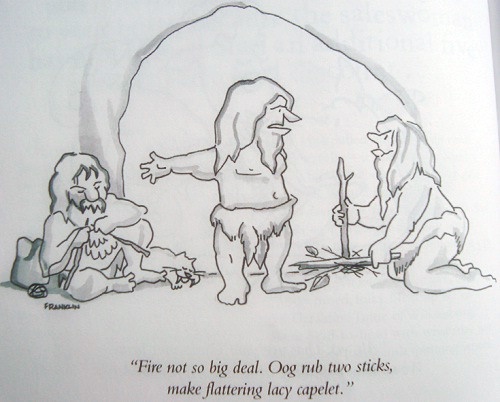 "El fuego no es para tanto, Oog coge dos palos y hace una preciosa capa"