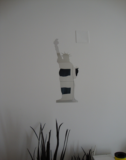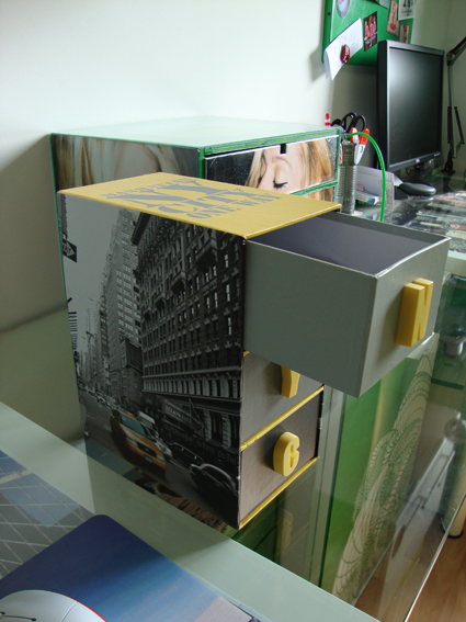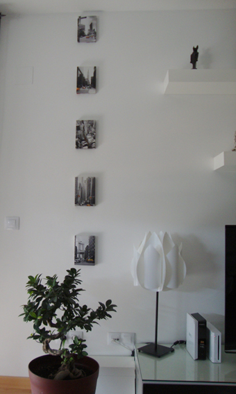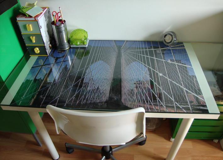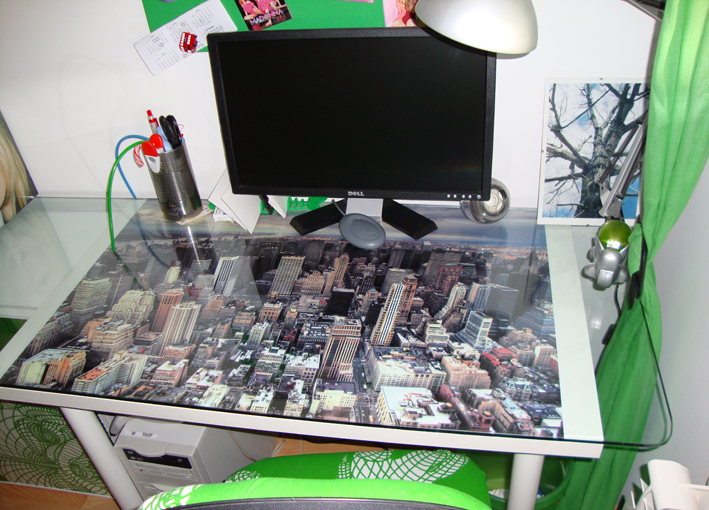Esta es mi zona de trabajo. Una mesa de ikea a la cual le he acoplado una foto de la ciudad.