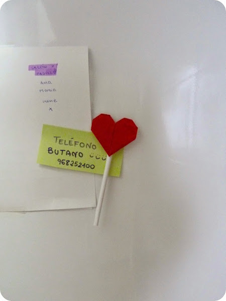 Pues el reto hoy viene de manos del Papelísimo, y consiste en hacer algo, a partir de corazones de origami. Y yo fue ver mi corazón tan rojito.... que lo primero que me vino a la mente fueron esas piruletas tan ricas de fresa :) :) (tenía otras ideillas en cabeza, pero esas... llegarán en un futuro, que ya tampoco tenía tiempo para más) Y ahí tengo mi versión en papel! ¿qué os parece?