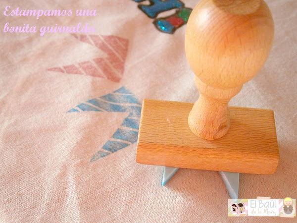 Podríais dejarla así perfectamente, pero a nosotros, nos parecía que quedaba un poco sosilla, así que cogimos uno de nuestros sellos, unas tintas para textil que combinasen con los colores de la composición y esto es lo que salió...