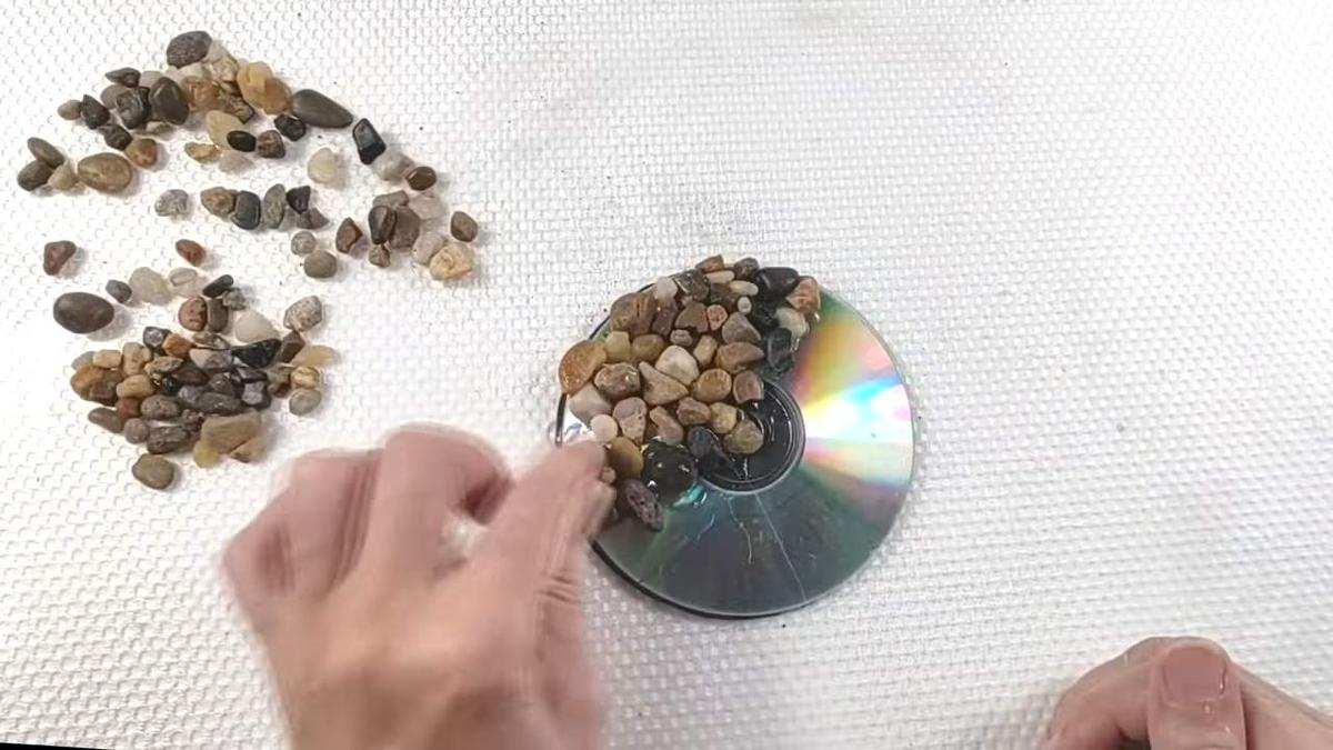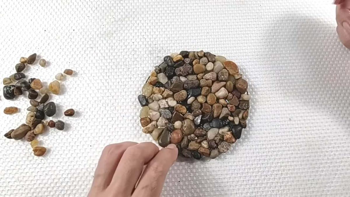 ahora voy a aplicar silicona por partes para que no se seque y encima le voy a ir acomodando estas piedritas yo utilizo silicona porque me da muy buenos resultados pero si no lo consiguen pueden usar cualquier pegamento fuerte que tengan es importante ubicar las piedras de tal manera de que especialmente en el centro no queden en punta para que no molesten cuando apoyemos el vaso o la taza en los bordes externos las pueden poner de cualquier forma una vez puestas todas voy a hacer presión así para que se peguen bien si lo prefieren les pueden poner en duda o tapa juntas para rellenar los espacios pero a mí me gusta dejarlos asíA continuación les comparto mi canal para que puedan ver todas las manualidades, accede haciendo click aquí. Espero que les sea de utilidad !!!