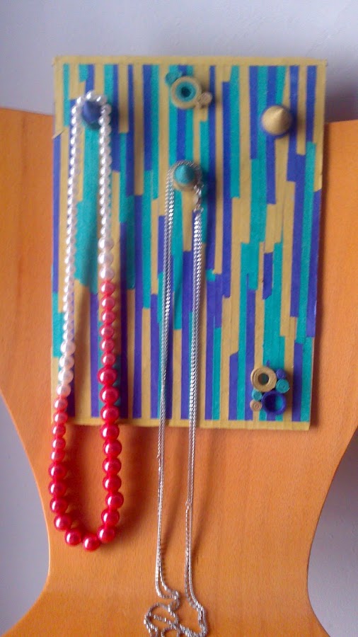En la edición del "Aprendiendo de todo un poco" de abril, hubo dos trabajos que empataron al ser los más votados y por lo tanto hay dos temas a elegir para el reto de este mes de mayo, uno lo ha propuesto Raquel y es un Diy Textil y otro lo propuso Jen y es "Ordenación". Me decanto por el tema "ordenación" y lo hago con este trabajo , un cuelga collares. Me encanta ...