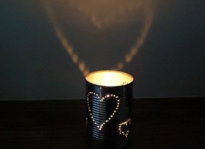Este es un detalle romántico precioso y muy baratito ;) Sólo necesitas una lata vacía, pintura, un punzón y una vela. ¡Alumbra tus cenas románticas con este regalito!