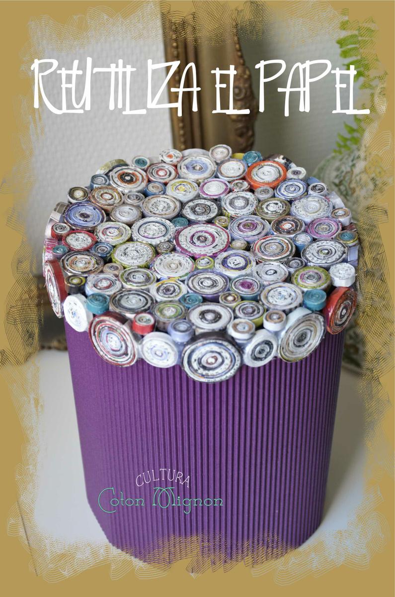 No podía faltar un recordatorio a uno de nuestros post. Esta vez recuperamos una caja hecha con cartón, y con tapa de rollitos de tira de papel hechos de revistas.