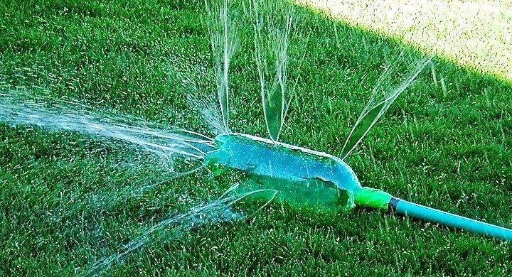 Como ven la idea es abrir huecos a la botella y colocar la manquera dentro, así de rápido tendremos un aspersor de riego.