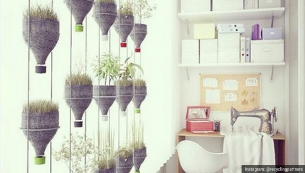 Las botellas de plástico recicladas, crean vida cuando las usas para decorar tu terraza.