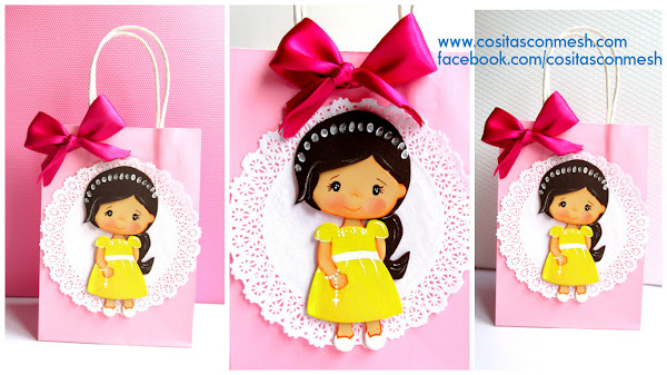 Hola amigos, en esta oportunidad quiero enseñarles cómo podemos personalizar las bolsas de regalo o suvenirs para bautizos o primera comunión de niñas, a mi me encanta hacer figuras en foami ( microporoso - goma eva ) como también con papel decorado de scrapbook, pero esta vez quise reciclar mis recortes de foami y hacer una pequeña niña que lleva en las manos un rosario o decenario. Ya que tenga hecha mi figura lo que haré sera pegarla sobre una blonda o carpeta de papel, quedan muy finas para decorar las bolsas de regalo. Espero que esta sencilla idea te sirva y te animes a hacerlo para algún bautizo o primera comunión. No te olvides de compartirlo con tus amigos, te dejare más ideas que de seguro te ayudaran.