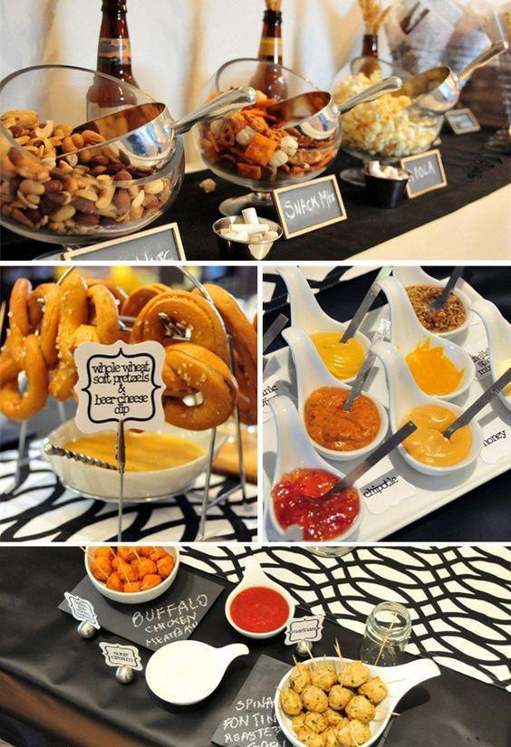 La selección de comida para una fiesta de hombres y cerveza, es sencilla. Lo ideal es preparar una gran picada de fiambres, quesos, carnes con aderezos, snacks como papas fritas, nachos, etc. Podés acompañar con panes caseros o galletitas como estas de queso y aceitunas, podés ver la receta aquí y también estos palitos de parmesano riquísimos.