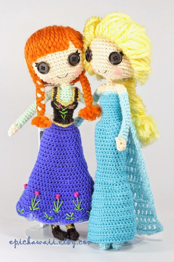 Y si tu hija es fan de frozen te puedes animar hacerle dos de trapo y personalizarlas con los trajes de Elsa y Ana, estas dos me las encontre en etsy estan a la venta porsupuesto no incluyen patrón al ganchillo y como saben aun no me atrevo hacer amigurumis.