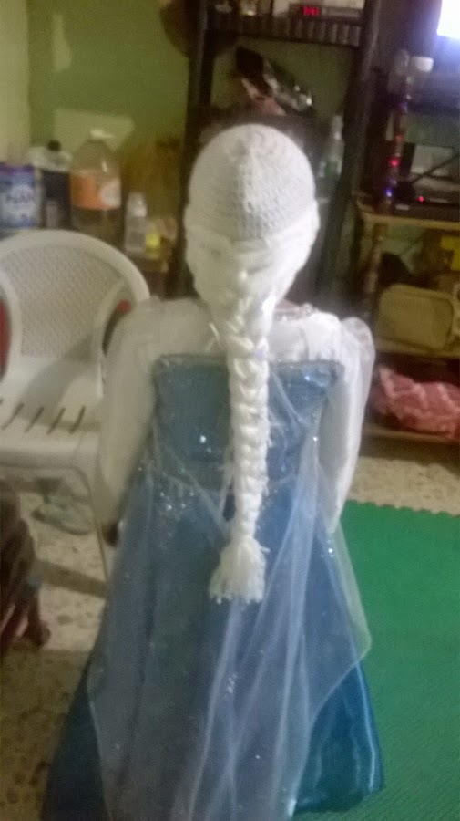 Después me pidió la peluca de la princesa de frozen, el tutorial esta en la página de youtube de Yolanda Soto, yo únicamente he modificado el peinado y le hice una trenza francesa que es el peinado original de la película.
