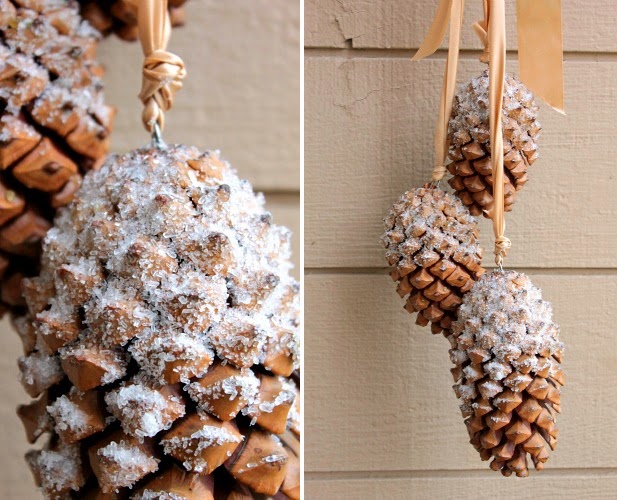 Como veis, el efecto de la sal queda estupendo. Parecen verdaderas piñas cristalizadas. También podéis darles un toque de color con purpurina o con spray.