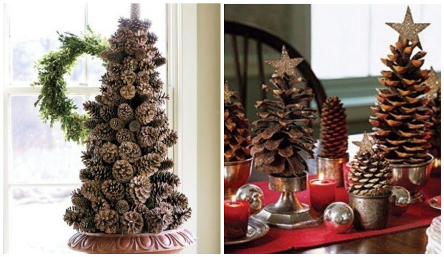 Arbolitos navideños con piñas- Ideales para ponerlos en la mesa de la oficina