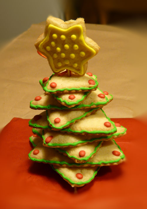 Mariví nos propone divertirnos experimentando un poco con las clásicas galletitas navideñas. Entre otras, nos ofrece este bonito árbol de Navidad hecho con galletas.