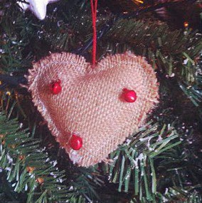 El procedimiento es parecido al de los árboles de navidad sólo que tendrás que crear una plantilla con forma de corazón y añadirle pequeños cascabeles sobre la tela.