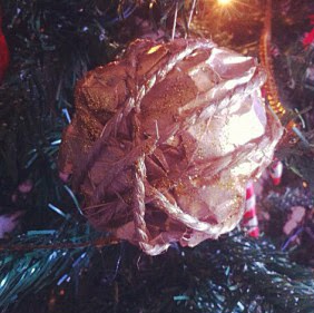 Eso mismo, con pelotas de tenis. Las pinte de rojo y espolvoreé purpurina roja sobre ellas, un lazo decorativo y un cordel para colgar del árbol y listo. Facilísimas!