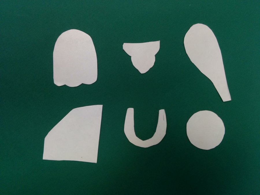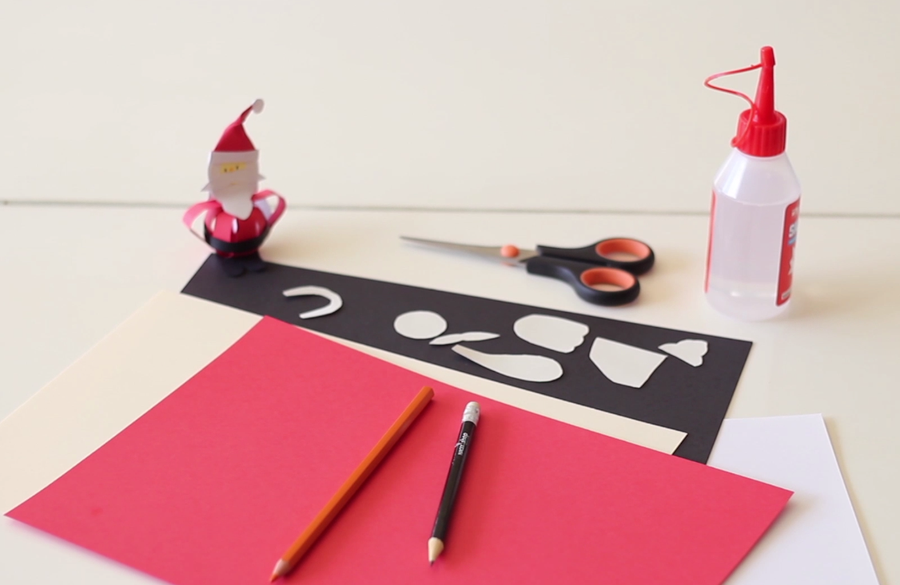 2 Después, con dichas piezas iremos recortando cada uno de los elementos que necesitaremos para montar el pequeño Papá Noel, en las diferentes cartulinas que hemos adquirido.