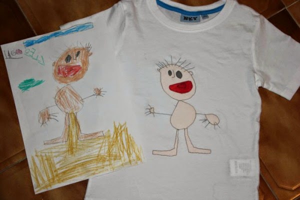 ¿Qué os parece la idea de plasmar ese dibujo en una camiseta? Aquí os muestro un par de ejemplos de las que yo he hecho y no sabéis la carita que se les queda al ver su obra de arte en su ropa. Sienten que su dibujo ha sido valorado de verdad y además se lo pueden enseñar a todo el mundo.