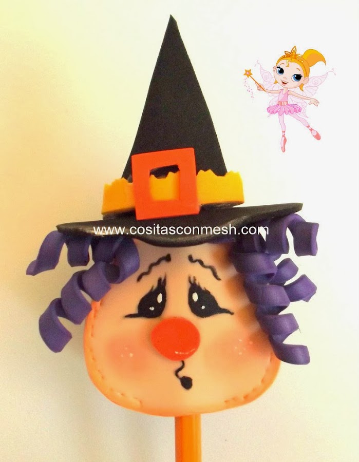 Otra manualidad con goma eva la trae Cosas cositas y cosotas conmesh, y es esta brujita con patrón. Puedes ver todos los pasos y el patrón AQUÍ.