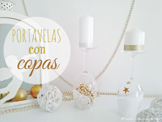 Estos portavelas con copas me parecieron geniales para resolver en unos minutos la decoración de la mesa navideña. En el enlace podéis ver el tutorial paso a paso.