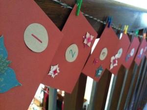 Este es más sencillo, pero se puede hacer fácilmente con ayuda de los niños, son tarjetas con el número del día y decoradas con pegatinas, pero les puedes poner botones, purpurinas.... deja volar tu imaginación y la de tus hijos.