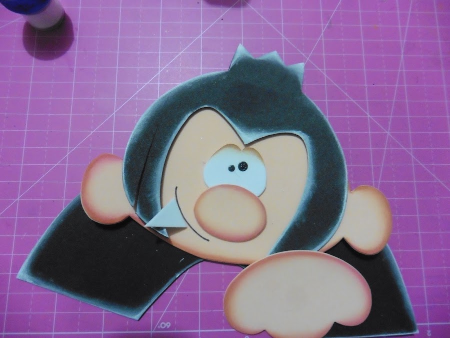 Lo mismo vamos hacer con las figuras de dracula y momia, son muy sencillas de elaborar, también podrías enriquecer este trabajo pegando en la corono arañitas, calabazitas o vampiritos.