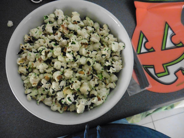 Observa en la foto como quedan pintadas las cotufas de verde.
