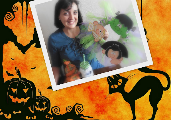 Por ultimo pegamos las figuritas en la corona de tecnopor...y listo ya tenemos una decoración para estos días de Haloween, yo espero que te haya gustado y que lo compartas con tus amigas.